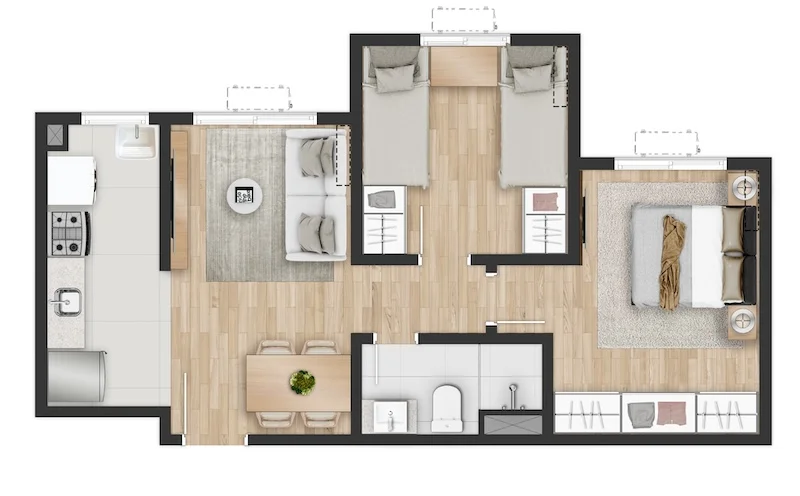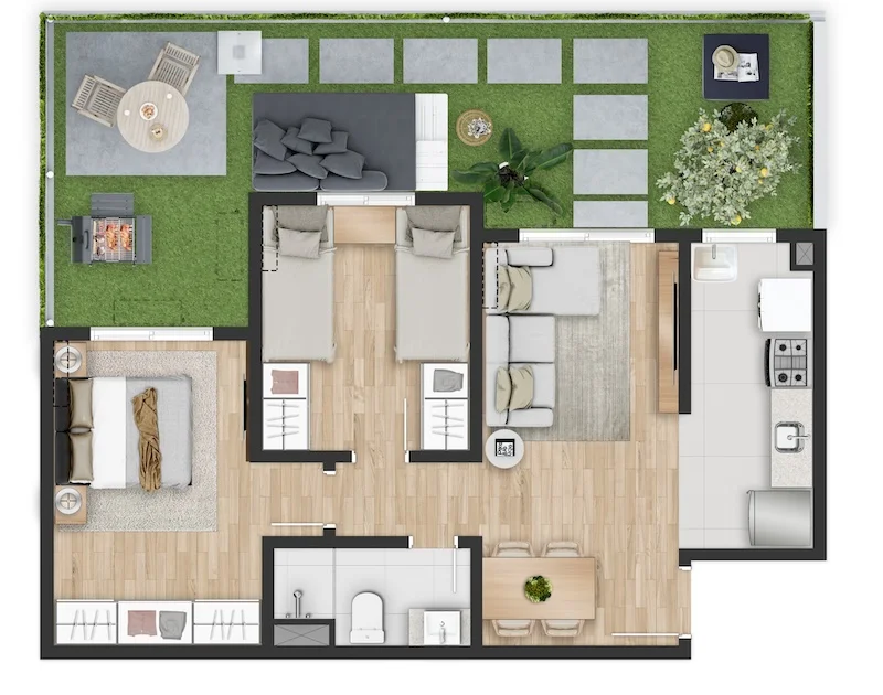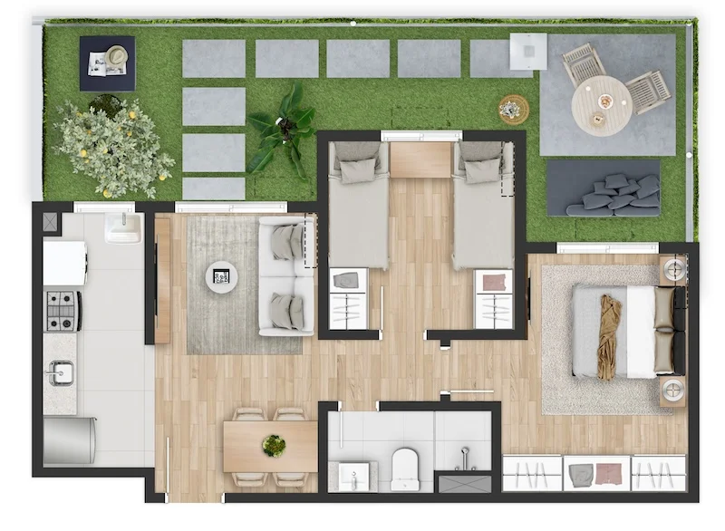 Planta Apto Meio - Gardens