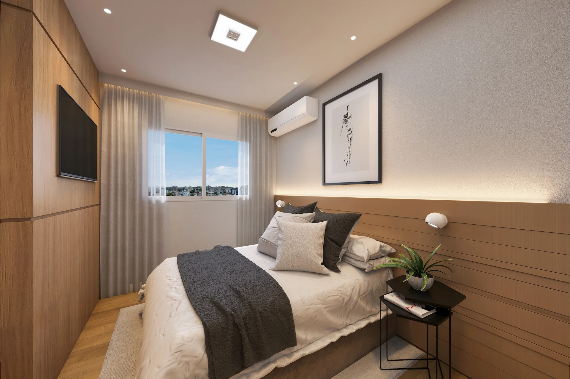 | Espera de ar condicionado | Quarto Casal, Solteiro e Sala de Estar |