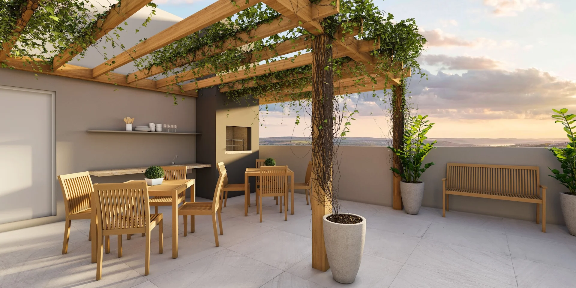 | Lazer | Salão de Festas, Quiosques com 02 Churrasqueiras, Quiosque PNE com uma Churrasqueira, Redário, Academia Funcional, Fireplace, Pet Place, Piscina Adulto e Infantil, Playground, Quadra Kids (Areia), Copa Funcionários, Rooftop (descoberto), Coworking e Espaço Gourmet. |